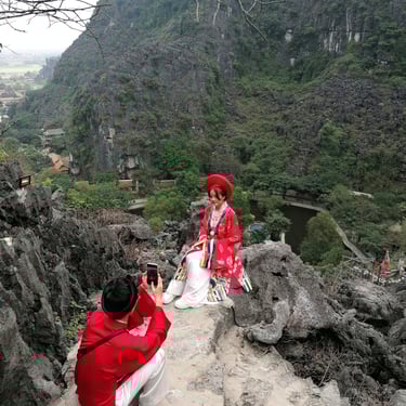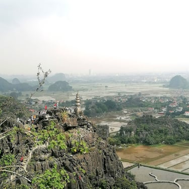 La province de Ninh Binh est un vrai trésor naturel : montagnes calcaires, temples nichés dans les falaises et rivières qui serpentent entre les rizières.